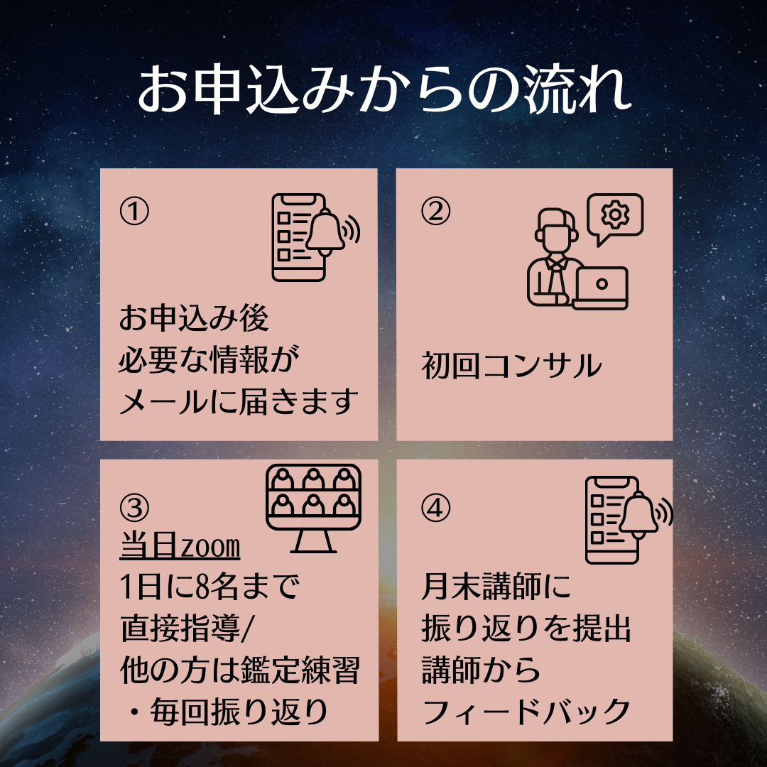 ⑤月に1回 講師による鑑定の直接指導(レッスン時間内で数名指名)